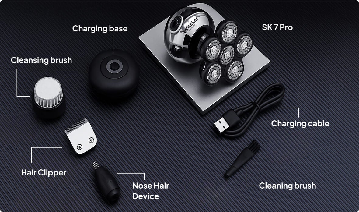 The SK7 Pro comes with a long-lasting battery that provides ample shaving time on a single charge. Our convenient wireless charging system allows you to easily charge the device by placing it on the charging dock, eliminating the need for cords and ensuring your shaver is always powered up and ready to go.